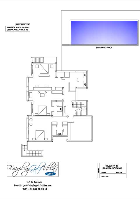 Planta inferior: 192,24 m2. Tres dormitorios con baño; porche.