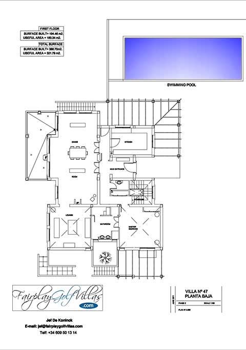 Equipamiento especial: Salón con chimenea – A/C frío y caliente. Barbacoa. Calefacción por suelo radiante. Equipo de música con altavoces instalados a través de toda la villa.
